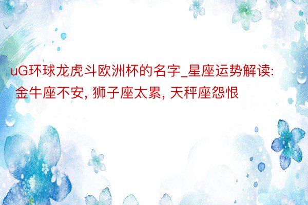 uG环球龙虎斗欧洲杯的名字_星座运势解读: 金牛座不安, 狮子座太累, 天秤座怨恨