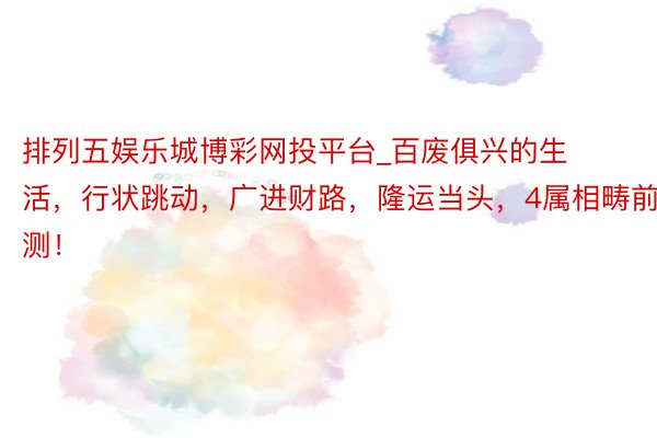 排列五娱乐城博彩网投平台_百废俱兴的生活,行状跳动,广进财路,隆运当头,4属相畴前预测!