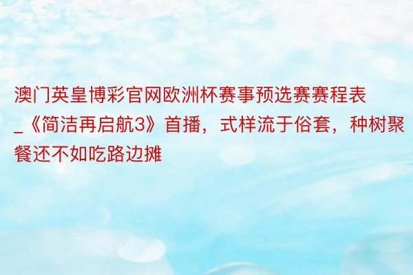澳门英皇博彩官网欧洲杯赛事预选赛赛程表自从知说念《简洁再启航3》上了招商会,准备拍摄后,小福星一直恭候着它的播出。