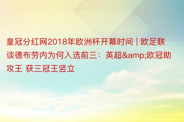 皇冠分红网2018年欧洲杯开幕时间 | 欧足联谈德布劳内为何入选前三:英超&欧冠助攻王 获三冠王竖立