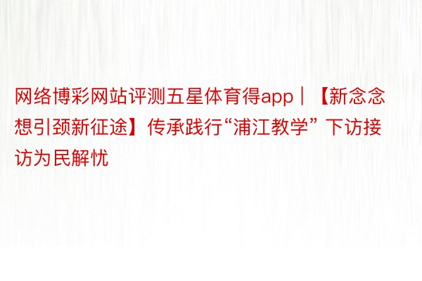 网络博彩网站评测五星体育得app | 【新念念想引颈新征途】传承践行“浦江教学” 下访接访为民解忧
