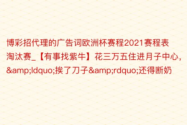 博彩招代理的广告词欧洲杯赛程2021赛程表淘汰赛_【有事找紫牛】花三万五住进月子中心,“挨了刀子”还得断奶