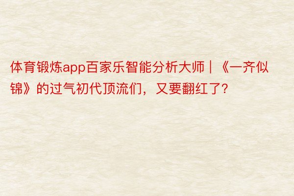 体育锻炼app百家乐智能分析大师 | 《一齐似锦》的过气初代顶流们,又要翻红了?