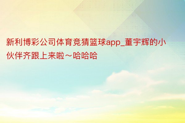 新利博彩公司体育竞猜篮球app_董宇辉的小伙伴齐跟上来啦~哈哈哈