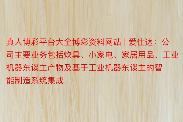 真人博彩平台大全博彩资料网站 | 爱仕达:公司主要业务包括炊具、小家电、家居用品、工业机器东谈主产物及基于工业机器东谈主的智能制造系统集成