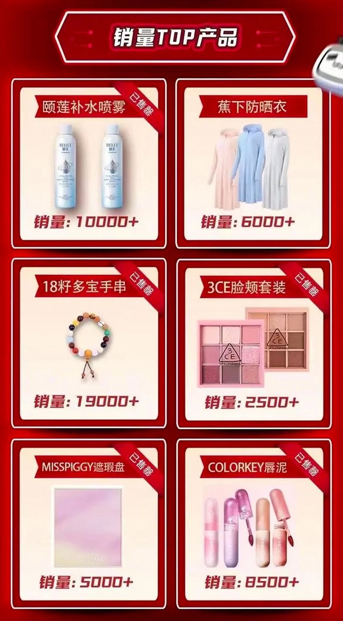 Mr迷瞪的带货物类较为垂直,比拟之下,宝剑嫂和雨哥鉴识属于好意思妆区和生存区,前者是生意化更快的内容品类,也决定了直播间的选品愈增多元和群众。凭证官方战报数据,直播间销量TOP居品不少亦然其他平台上的热卖居品,举例颐莲喷雾、蕉下防晒衣等。