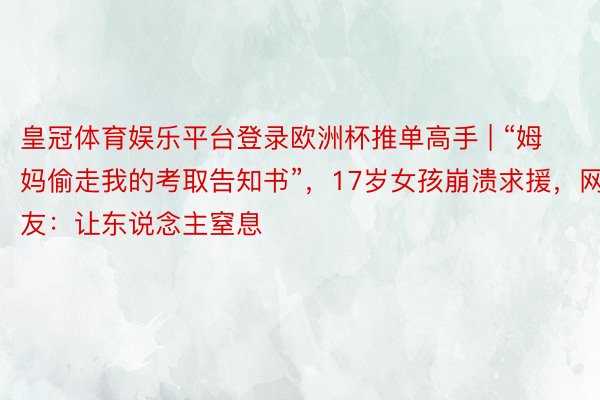 皇冠体育娱乐平台登录欧洲杯推单高手 | “姆妈偷走我的考取告知书”,17岁女孩崩溃求援,网友:让东说念主窒息