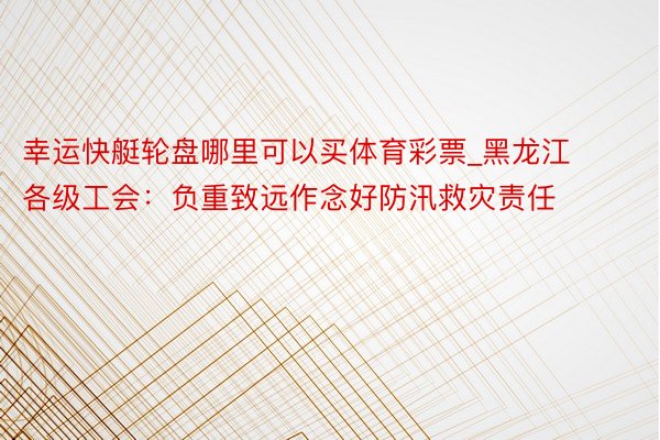 幸运快艇轮盘哪里可以买体育彩票_黑龙江各级工会:负重致远作念好防汛救灾责任