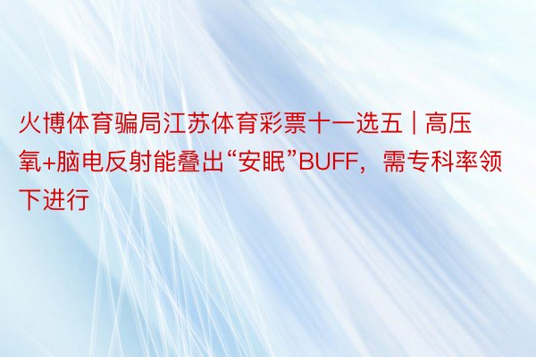 火博体育骗局江苏体育彩票十一选五 | 高压氧+脑电反射能叠出“安眠”BUFF,需专科率领下进行