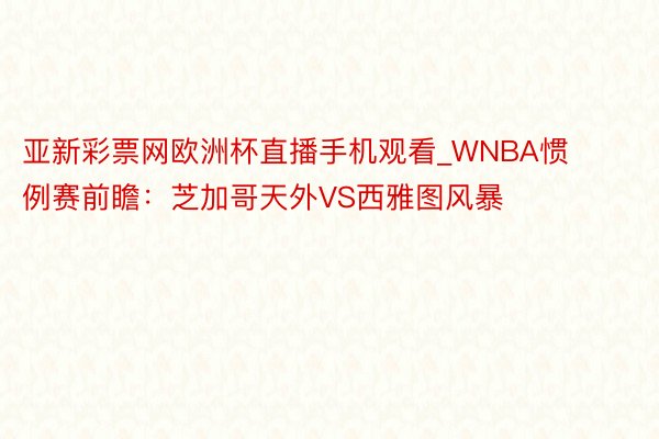 亚新彩票网欧洲杯直播手机观看_WNBA惯例赛前瞻:芝加哥天外VS西雅图风暴