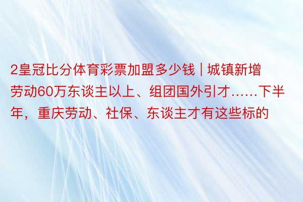 2皇冠比分体育彩票加盟多少钱 | 城镇新增劳动60万东谈主以上、组团国外引才……下半年,重庆劳动、社保、东谈主才有这些标的