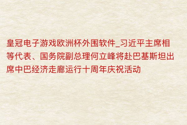 皇冠电子游戏欧洲杯外围软件_习近平主席相等代表、国务院副总理何立峰将赴巴基斯坦出席中巴经济走廊运行十周年庆祝活动
