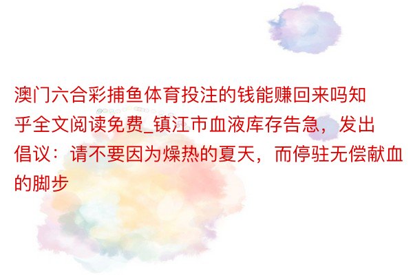 澳门六合彩捕鱼体育投注的钱能赚回来吗知乎全文阅读免费_镇江市血液库存告急,发出倡议:请不要因为燥热的夏天,而停驻无偿献血的脚步