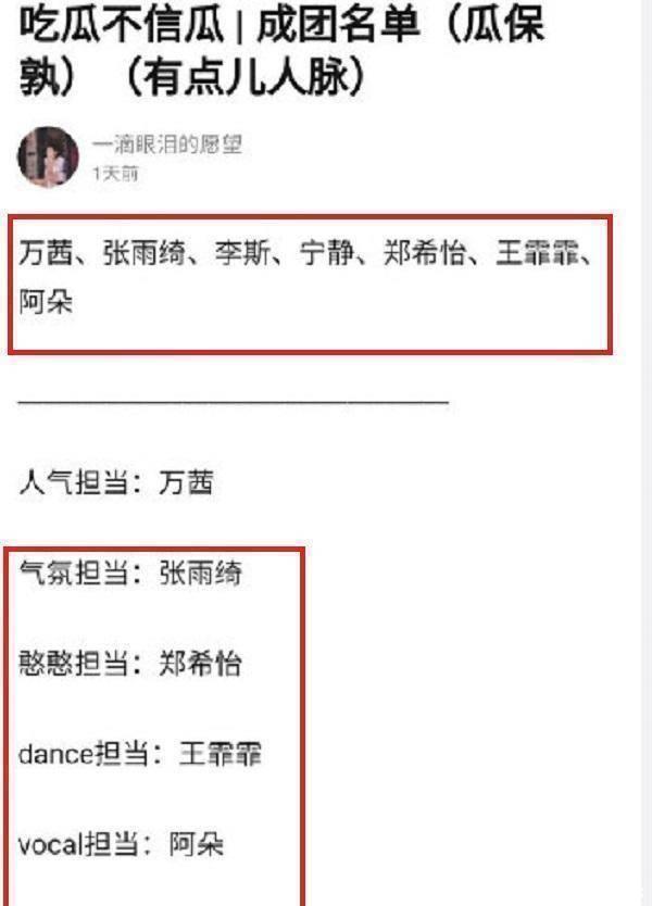 跟着姐姐们总决赛公演名单的曝光,最终成团额名单也被曝光。从最终成团的名单中咱们可见有万茜、张雨绮、郑希怡、王云雾、阿朵、李斯丹妮、宁静。这个声势可以说是迥殊精髓了。而在曝光的名单中也姐姐们也永别有我方的专属担当位置。