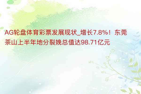 AG轮盘体育彩票发展现状_增长7.8%!东莞茶山上半年地分裂娩总值达98.71亿元