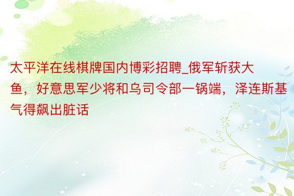 太平洋在线棋牌国内博彩招聘_俄军斩获大鱼,好意思军少将和乌司令部一锅端,泽连斯基气得飙出脏话
