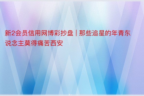 新2会员信用网博彩抄盘 | 那些追星的年青东说念主莫得痛苦西安