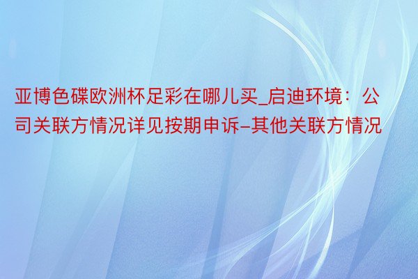 亚博色碟欧洲杯足彩在哪儿买_启迪环境:公司关联方情况详见按期申诉-其他关联方情况