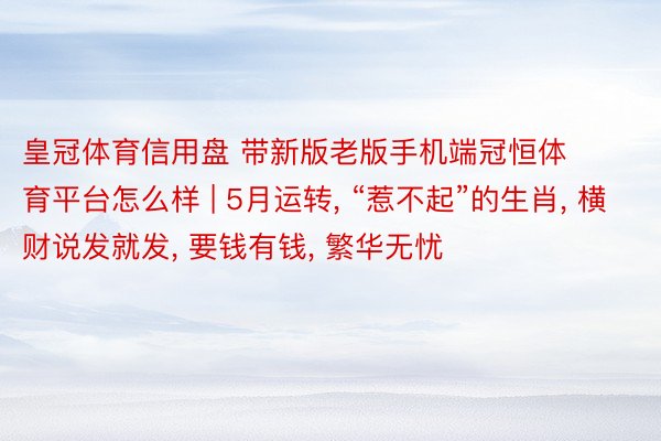 皇冠体育信用盘 带新版老版手机端冠恒体育平台怎么样 | 5月运转, “惹不起”的生肖, 横财说发就发, 要钱有钱, 繁华无忧