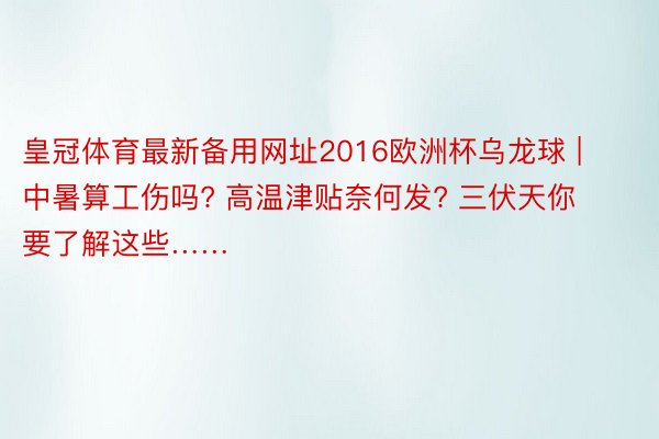皇冠体育最新备用网址2016欧洲杯乌龙球 | 中暑算工伤吗? 高温津贴奈何发? 三伏天你要了解这些……