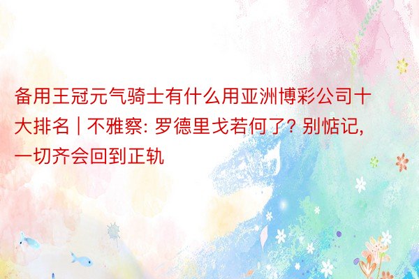 备用王冠元气骑士有什么用亚洲博彩公司十大排名 | 不雅察: 罗德里戈若何了? 别惦记, 一切齐会回到正轨