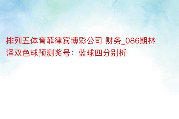 排列五体育菲律宾博彩公司 财务_086期林泽双色球预测奖号:蓝球四分别析