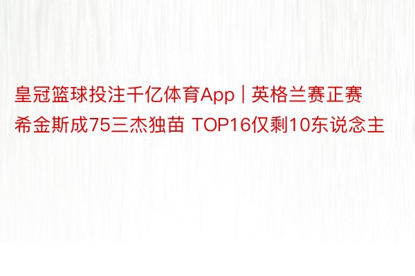 皇冠篮球投注千亿体育App | 英格兰赛正赛希金斯成75三杰独苗 TOP16仅剩10东说念主