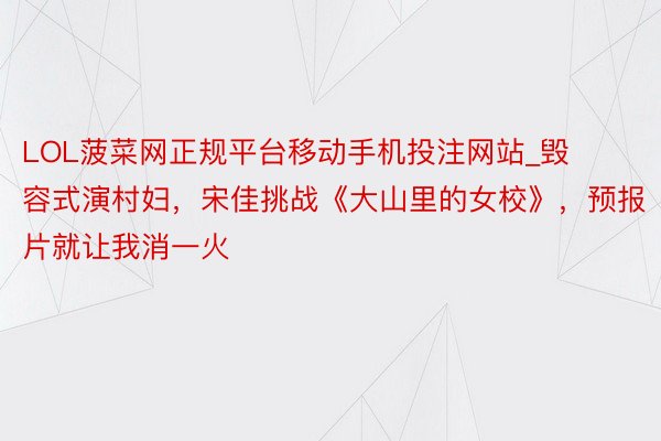 LOL菠菜网正规平台移动手机投注网站_毁容式演村妇,宋佳挑战《大山里的女校》,预报片就让我消一火