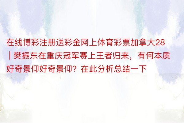 在线博彩注册送彩金网上体育彩票加拿大28 | 樊振东在重庆冠军赛上王者归来,有何本质好奇景仰好奇景仰?在此分析总结一下